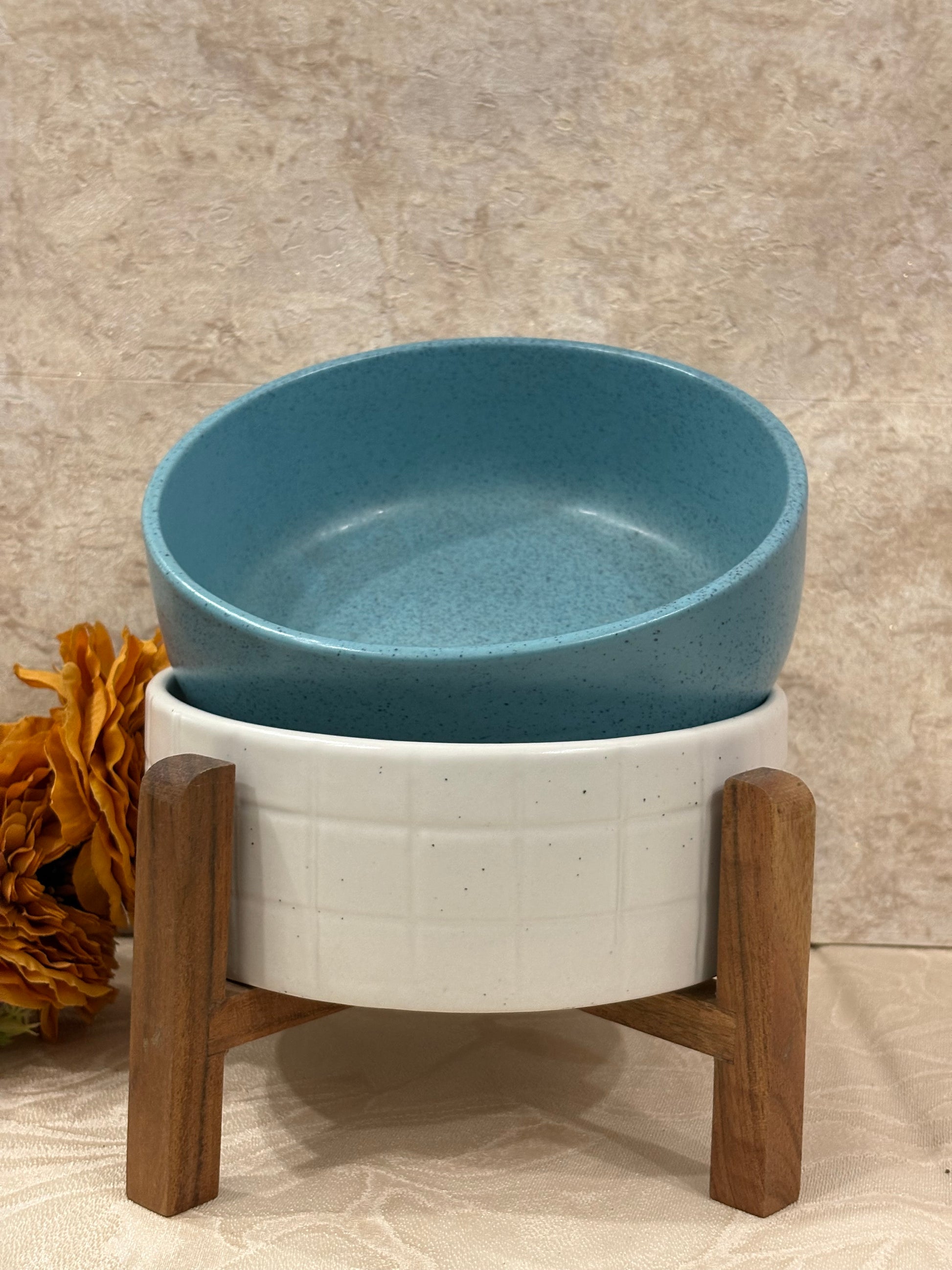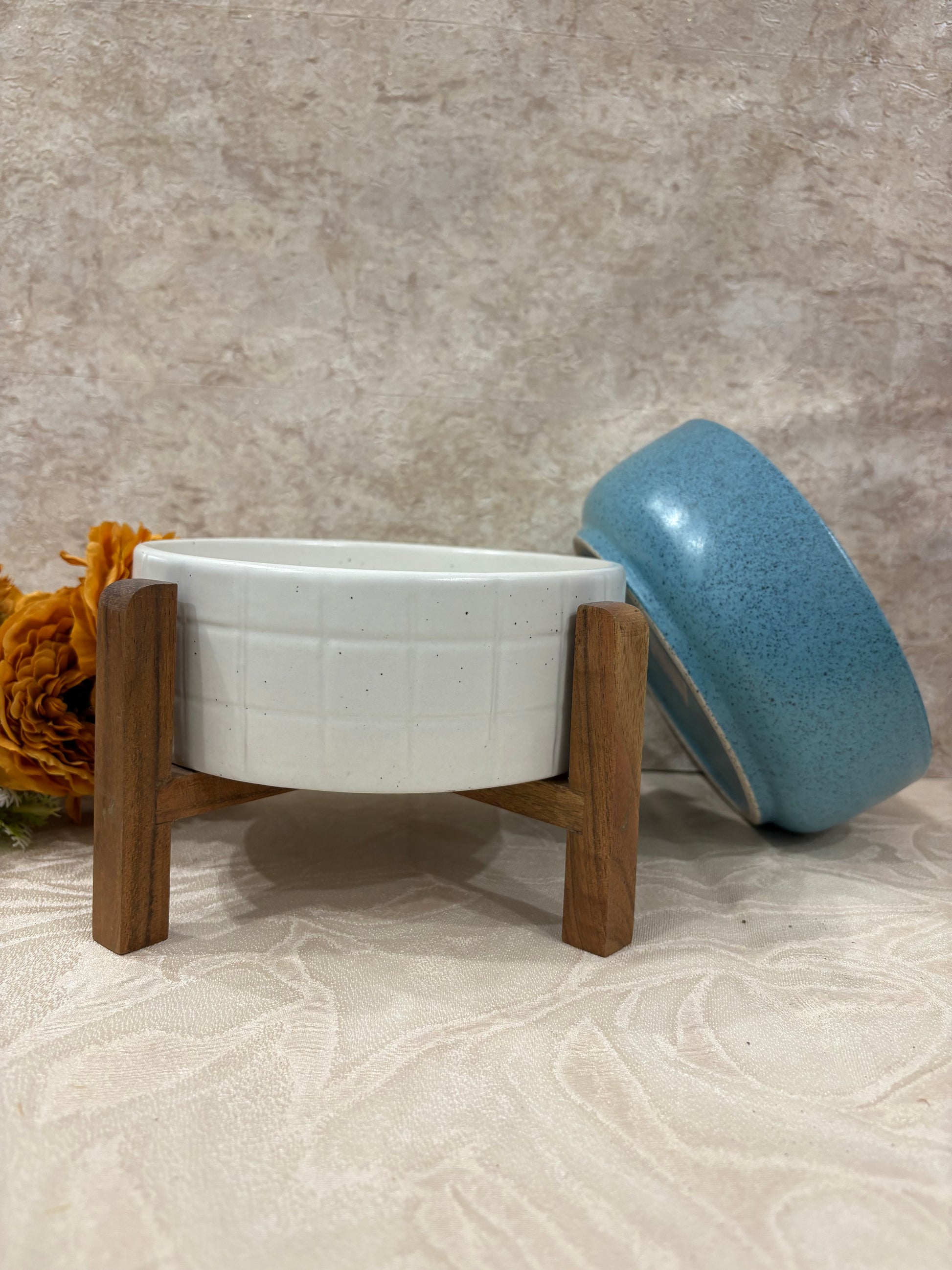 Elevate your dining experience with this ceramic serving bowl paired with a sturdy wooden stand. The ceramic bowl offers a smooth, durable surface ideal for salads, snacks, or side dishes, while the wooden stand provides stability and an elegant presentation. Designed for both functionality and style, this set enhances the table setting and simplifies serving, making it perfect for everyday use or special occasions.