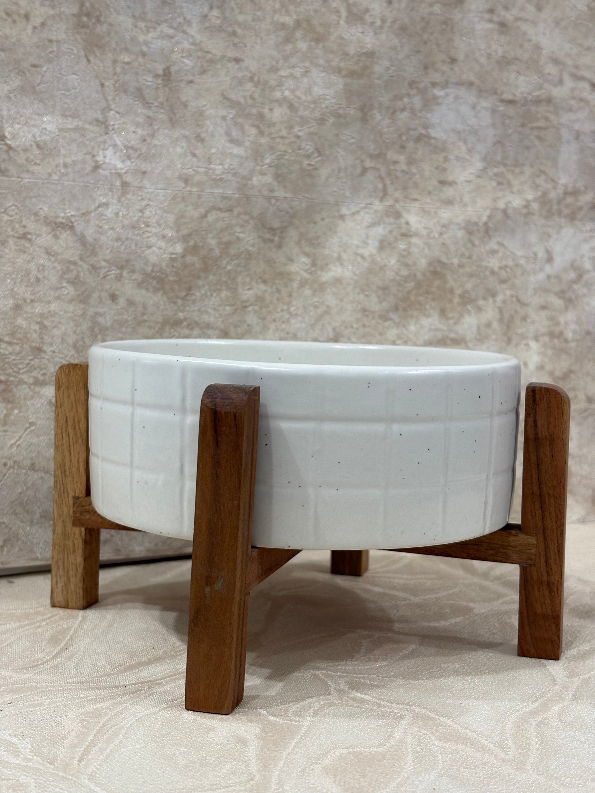 CERAMIC SERVING BOWL WITH WOOD STAND
